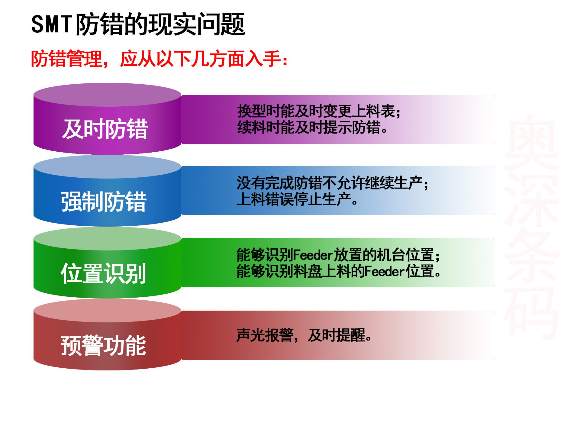 2)强制防错:没有完成防错不允许继续生产;上料错误停止生产。